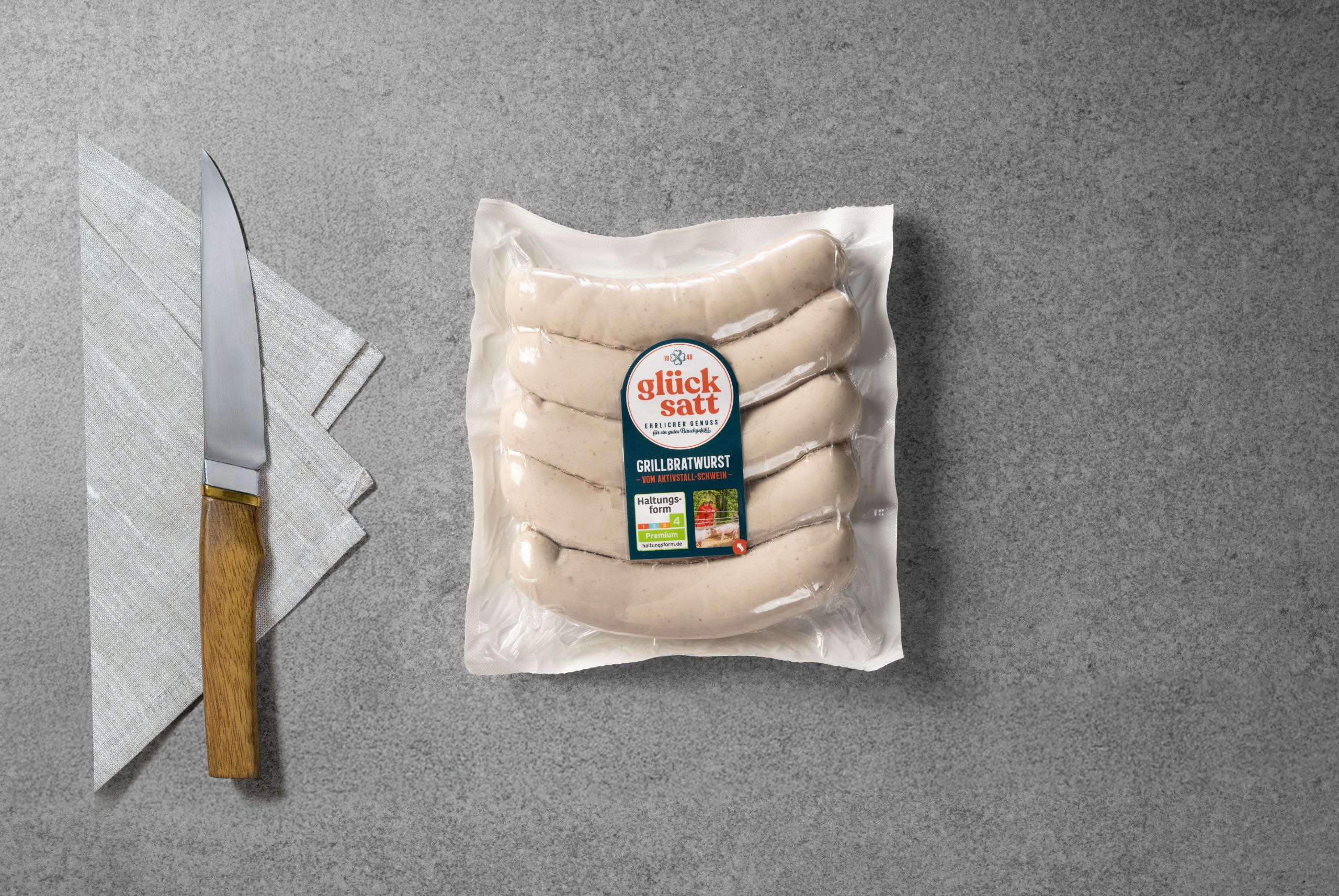 Das Konzept „Aktivstall für Schweine“ sowie die Marke „glücksatt“ sind jeweils zertifizierte Programme der Haltungsform 4 – Auslauf/Weide. Das frische Schweinefleisch ist zusätzlich mit der staatlichen Tierhaltungskennzeichnung für die Haltungsform „Auslauf/Weide“ gekennzeichnet.